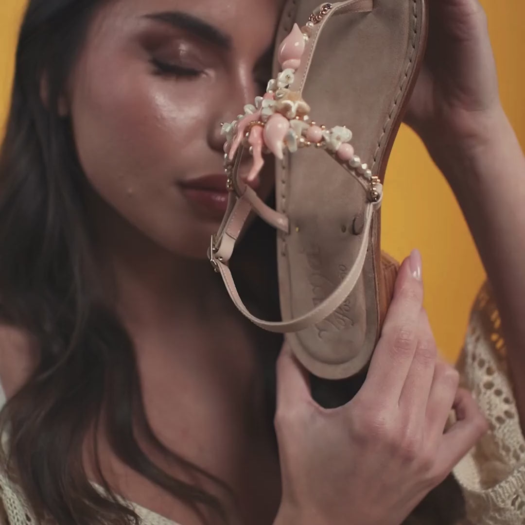 And then there is you, who chooses the color of the stones, who assists in the composition of your jewel sandal, who actively participates in that magic. Because each creation is designed to be unique. Like you.