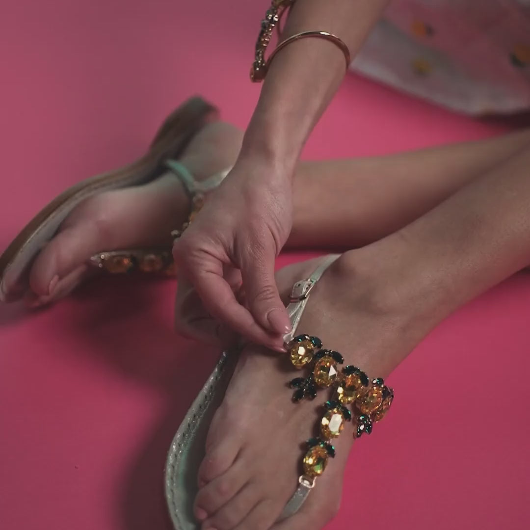 E poi ci sei tu, che scegli il colore delle pietre, che assisti alla composizione del tuo sandalo gioiello, che partecipi attivamente a quella magia. Perché ogni creazione è pensata per essere unica. Come te.