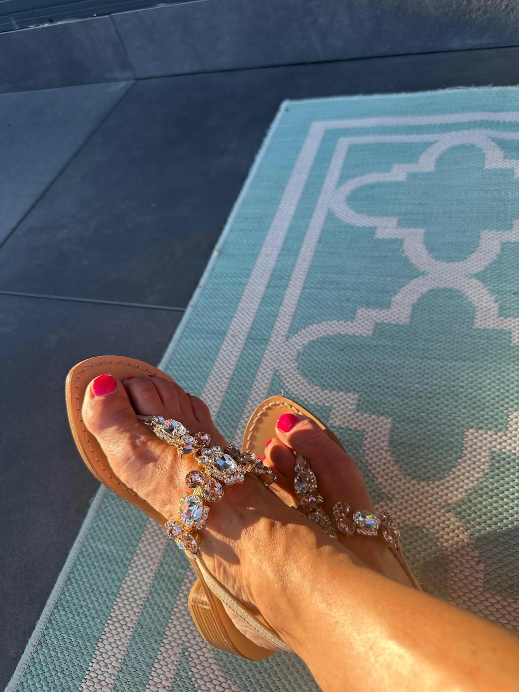 - Ogni castone incastona con cura le prestigiose pietre cristallo di prima linea, dal taglio brillante, che brillano di luce propria. Le gemme antigraffio, dalle forme sfaccettate e colori omogenei, sono selezionate per la loro purezza unica, rendendo ogni sandalo un autentico gioiello ai tuoi piedi.