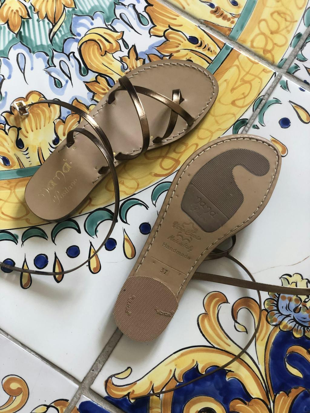 I sandali di Nanà Positano sono tutti realizzati a mano, secondo antiche tradizioni che ancora oggi si tramandano da padre in figlio arrivando alla odierna terza generazione.